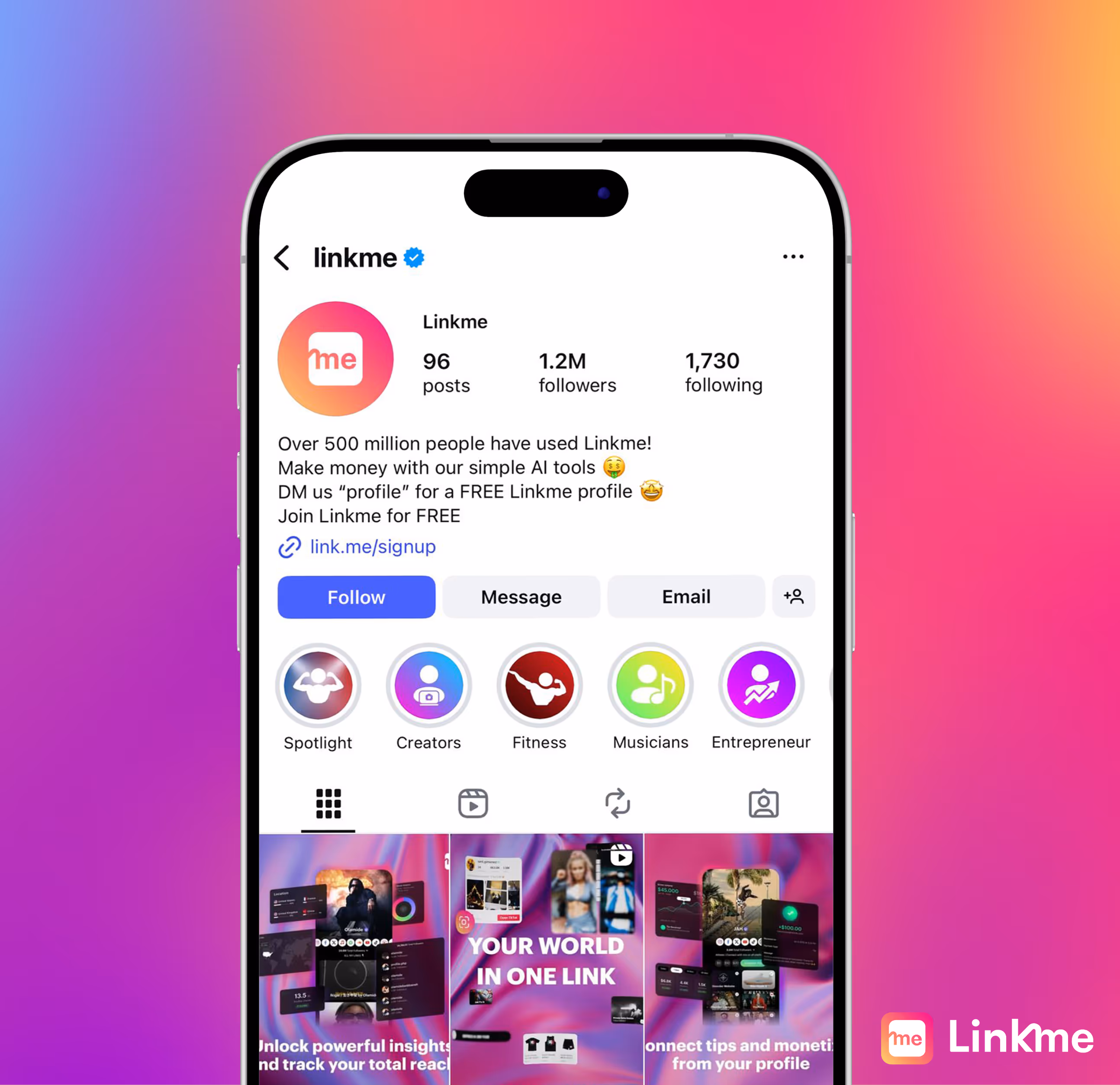 Linkme is a global link-in-bio platform with 200M+ visits in 180+ countries, now evolving into an AI-powered tool for creators and celebrities to manage their digital presence.